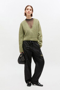 This sweater features a deep v-neckline, long sleeves with rib edges and a GANNI Butterfly logo at the side. DETAILS - 39% wool, 30% mohair, 29% recycled polyester 2% elastane. Learn more about our materials - Deep V-neckline - Long sleeves - Ribbed edges - Gold-tone GANNI Butterfly logo Made in: China Product ID: K2621 SIZE & FIT - Regular fit - Lena is 5’9” and wears a size S - For personalised guidance on sizing and fit, contact our Customer Service team - here - .