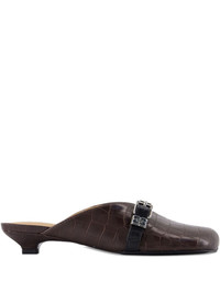 buckle-detail croco-embossed mules Highlights - Brown - Croco effect - Buckle detail - Slip-on - Round toe - Kitten heel Imported Composition Sole: Rubber 100%, Calf Leather 100% Outer: Artificial Leather 100% Lining: Calf Leather 100%