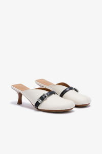 These heels feature a mule style design, rounded toe, v-shaped instep and a buckle strap detail with a GANNI Butterfly logo. DETAILS - 50% recycled leather, 26% polyurethane fibre, 24% TENCEL™ Lyocell. Learn more about our materials - Mule style - Rounded toe - V-shaped instep - Contrast buckle strap detail - Silver-tone GANNI Butterfly logo - Wooden heel This style contains PELINOVA®. PELINOVA® is bringing a fresh perspective to leather by reclaiming leather scraps from the fashion and upholstery industries and blending them with TENCEL™ Lyocell, to create a recycled leather material that reduces reliance on virgin resources—without compromising on quality. PELINOVA® is part of GANNI’s Fabrics of the Future, a programme set up in 2019 by GANNI to research, test and eventually scale innovative materials that challenge conventional material methods, paving the way for the future of fashion. Made in: Brazil Product ID: S3218 SIZE & FIT - For personalised guidance on sizing and fit, contact our Customer Service team - here - .