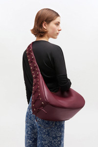 This bag features a shoulder strap, a zip closing and gold-tone GANNI Butterfly logo. The bag has a mirror hangtag and inside zipped pocket. DETAILS - 65% recycled leather, 19% polyurethane fibre, 16% polyester. Learn more about our materials - Lining composition: 65% Recycled Cotton 35% Cotton - Shoulder strap - Zip closure - Gold-tone GANNI Butterfly logo - Metallic dice with a GANNI and Butterfly logo engraved - GANNI embossed logo on the back of the bag - Mirror hangtag - Corseted lace-up accents - One compartment - Inside zipped pocket Made in: China Product ID: A7262 SIZE & FIT - Strap length: 40 cm - Height: 43 cm - Width: 29 cm - Depth: 15 cm - Designed to hold an iPhone 16 Pro Max, wallet, sunglasses, keys, water bottle, pouch, gym clothes, 15” laptop - For personalised guidance on sizing and fit, contact our Customer Service team - here - .
