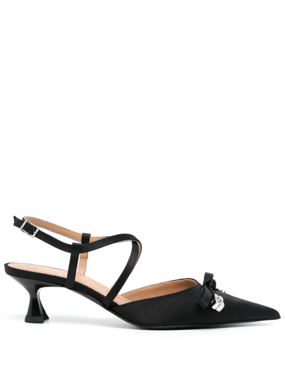 Butterfly Bow 50mm pointed-toe pumps Highlights - Black - Recycled polyester blend - Bow detailing - Crystal embellishment - Pointed toe - Side buckle fastening - Branded footbed - 50mm low heel - Rubber sole Imported Composition Outer: Recycled Polyester 51%, Polyester 49% Sole: Rubber 100% Lining: Polyurethane 76%, Viscose 24% SIZE & FIT Measurement HEEL 1.96 in(5 cm) Sole height 0.19 in(0.5 cm)
