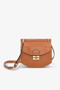 This Small Apo-G Bag comes in a caramel colour with a glossy finish. Crafted from recycled leather, the Apo-G features a magnetic closure with a GANNI Butterfly gold-tone clasp and a detachable strap, allowing for versatile wear as a shoulder bag or clutch. The compact interior has a slip pocket and three main compartments, one of which has a zip closure. DETAILS - 65% recycled leather, 19% polyurethane fibre, 16% polyester. Learn more about our materials - Adjustable and removable shoulder strap - GANNI Butterfly gold-tone clasp - Magnetic closure - Three main compartments, one equipped with a zip closure - Slip pocket Made in: China Product ID: A6448