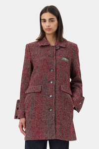 This Red Check Midi Jacket features a collar, a single-breasted button closure with black buttons and a buttoned cuff detail. The coat has two slit pockets on the chest and two flap pockets on the hips. DETAILS - 50% recycled wool, 50% recycled polyester. Learn more about our materials - Lining composition: 100% Recycled Polyester - Long sleeves with buttoned cuffs - Button closure - Front pockets - Flap pockets Made in: China Product ID: W0031 SIZE & FIT - Regular fit - Paulina is 5’10” and wears a size US 4
