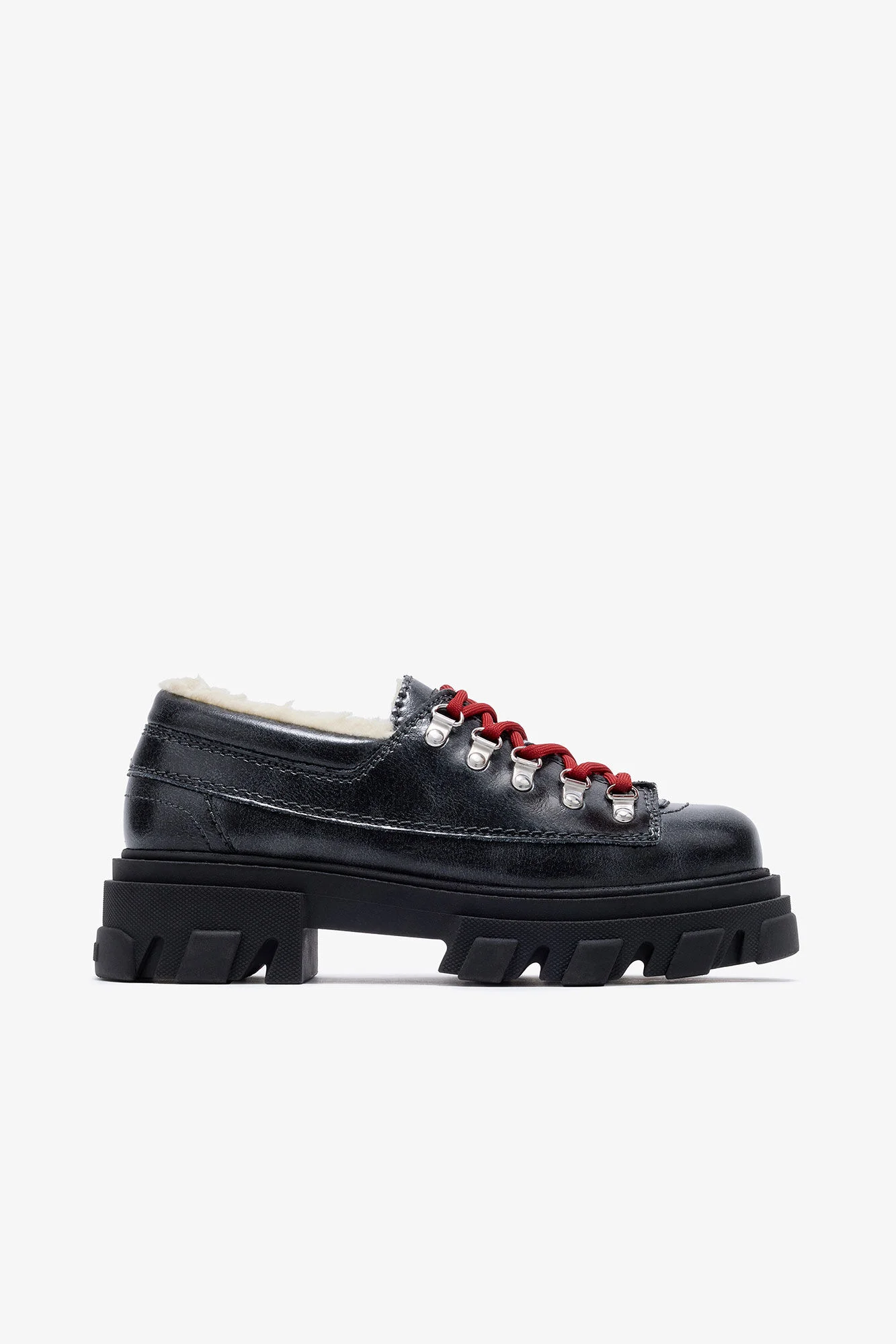 These derbies feature a round toe, laces and lace hooks, a cleated sole and a silver-tone GANNI Butterfly logo. DETAILS - 60% recycled leather, 26% TENCEL™ Lyocell, 14% polyurethane. Learn more about our materials - Round toe - Laces and lace hooks - Cleated sole - Furry lining - Silver-tone GANNI Butterfly logo This style contains PELINOVA®. PELINOVA® is bringing a fresh perspective to leather by reclaiming leather scraps from the fashion and upholstery industries and blending them with TENCEL™ Lyocell, to create a recycled leather material that reduces reliance on virgin resources—without compromising on quality. PELINOVA® is part of GANNI’s Fabrics of the Future, a programme set up in 2019 by GANNI to research, test and eventually scale innovative materials that challenge conventional material methods, paving the way for the future of fashion. Made in: Portugal Product ID: S3212 SIZE & FIT - For personalised guidance on sizing and fit, contact our Customer Service team - here - .
