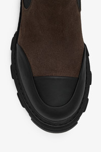 These boots feature a round toe, elastic panels, toe cap details, pull tabs and chunky cleated soles. DETAILS - 60% Recycled Leather, 27% Polyester, 13% Polyurethane Learn more about our materials - Round toe - Toe cap details - Elastic panels - Cleated soles - Pull tabs The piece contains PELINOVA®, a next-gen material that is part of our Fabrics of the Future initiative. PELINOVA® reclaims leather scraps from the fashion and upholstery industries and blends them with TENCEL™ Lyocell to create a recycled leather material that reduces reliance on virgin resources. Fabrics of the Future is a programme set up in 2019 by GANNI to research, test and eventually scale innovative materials that challenge conventional material methods, paving the way for the future of fashion. Made in: Portugal Product ID: B1010079