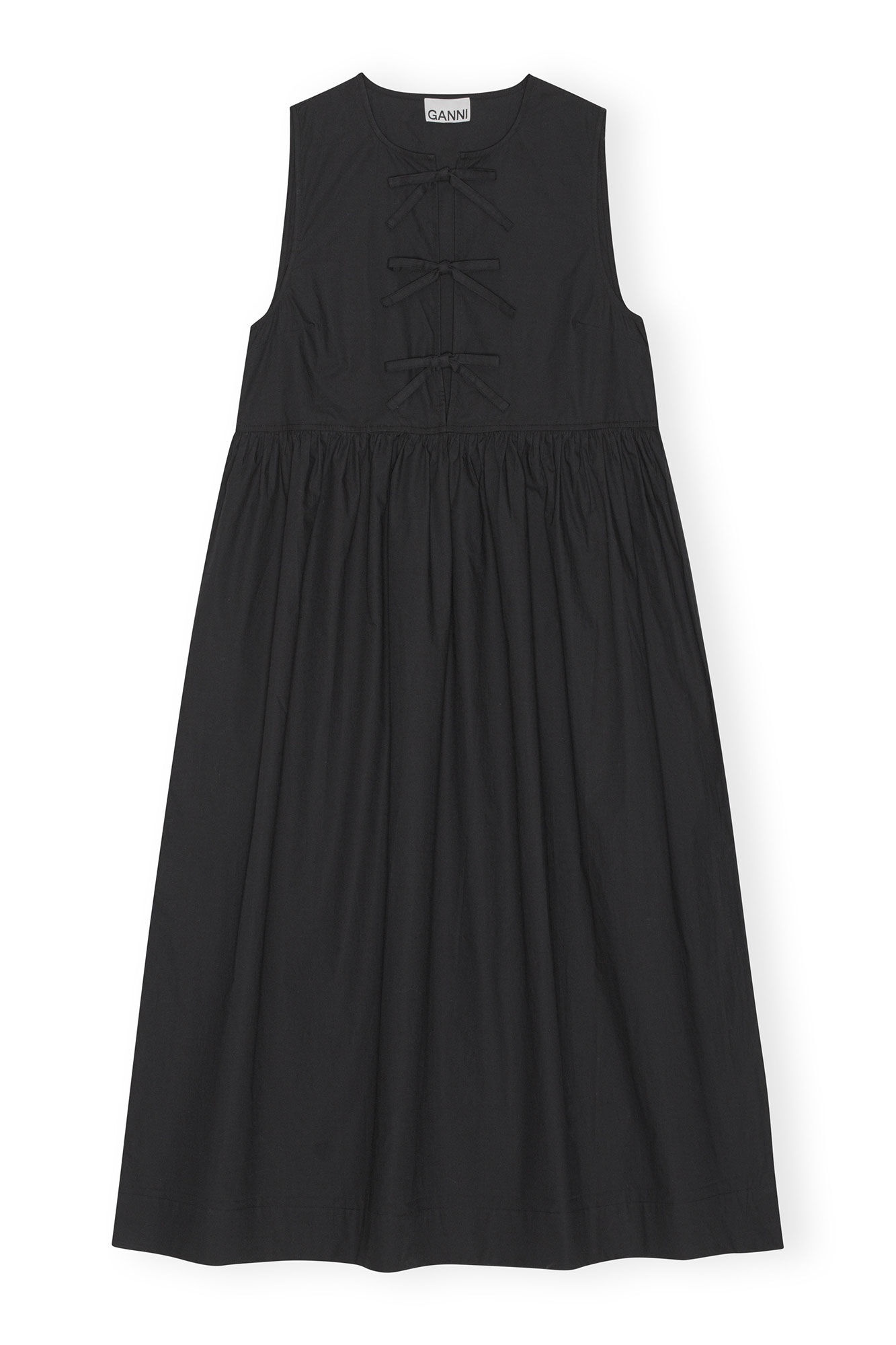 This Cotton Poplin Midi Dress is made from organic cotton. The dress is designed for a relaxed fit with an A-line silhouette and features a round neckline and three tie bands at the front. DETAILS - 100% organic cotton. Learn more about our materials - Round neckline - Sleeveless - Three tie bands at the front Made in: India Product ID: F8453 SIZE & FIT - Designed for a relaxed fit - Take your normal size to achieve the model's look, those in between sizes or with a smaller frame might consider taking a size down for a closer fit - Vigga is 5’9” and wears a size US 4 - Rodny is 5’10” and wears a size US 4