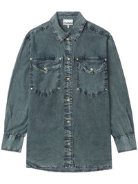 cotton shirt Highlights - Powder blue - Cotton - Washed denim - Front press-stud fastening - Classic collar - Two chest flap pockets - Long sleeves - Press-stud fastening cuffs - Curved hem Imported Composition Cotton 100%