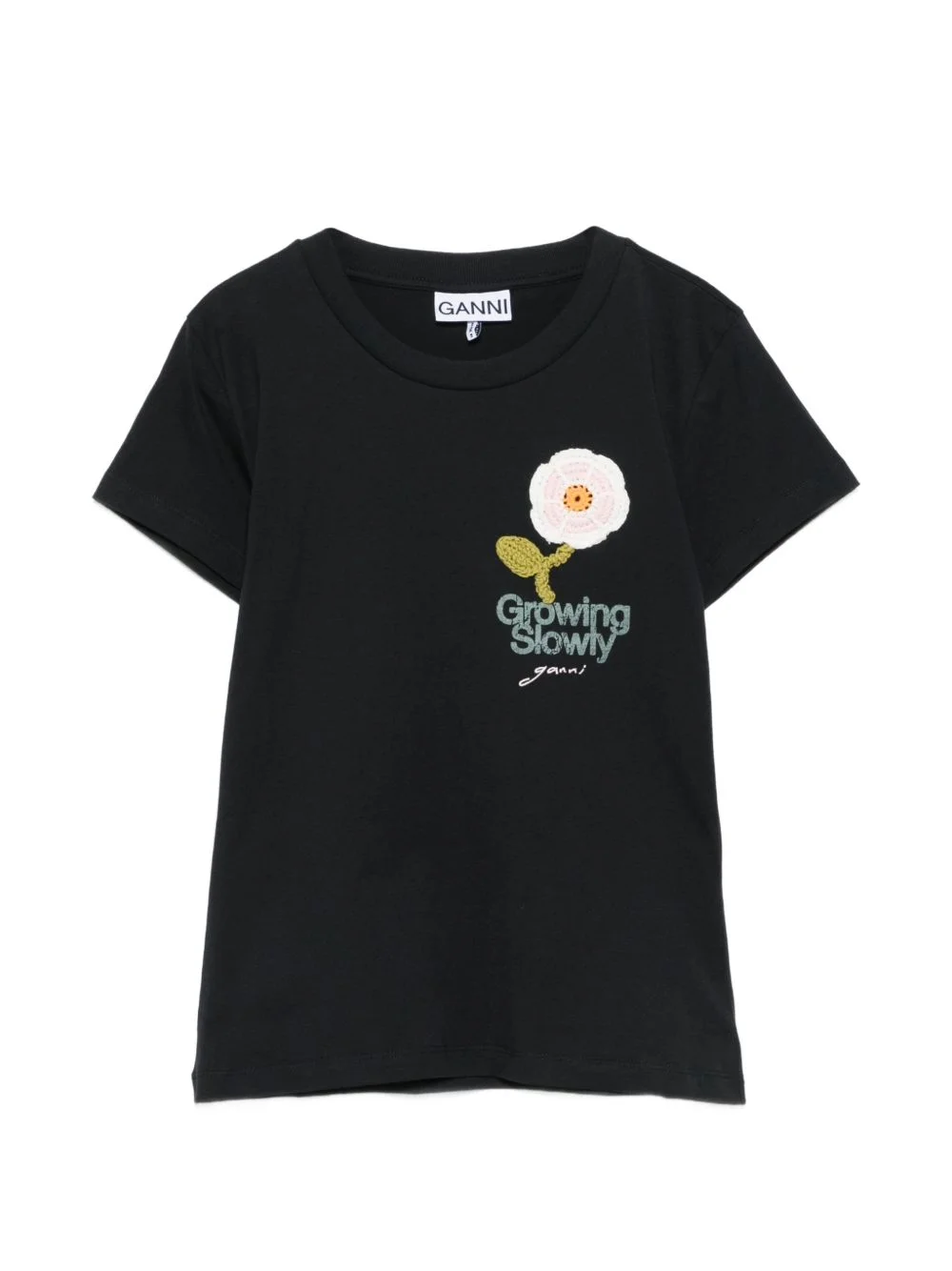 crochet-patch baby T-shirt Highlights - Black - Cotton - Round neck - Short sleeves - Floral print - Tonal topstitching Imported Composition Organic Cotton 100% Washing instructions Machine Wash