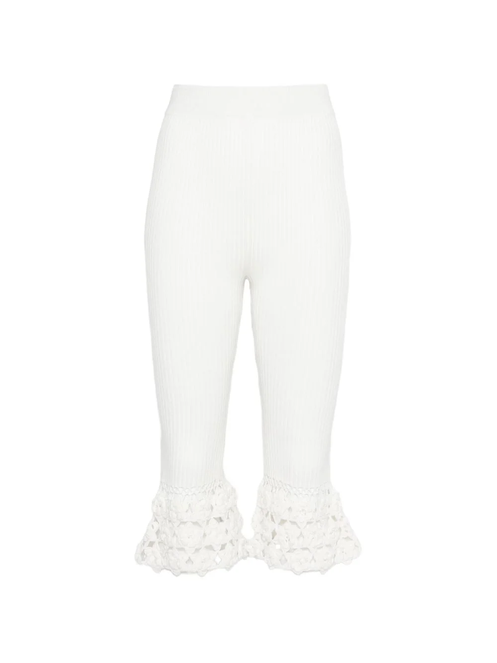 crochet ribbed trousers Highlights - White - Ribbed knit - Crochet trim - Flared hem Imported Composition Organic Cotton 90%, Polyamide 10% Washing instructions Hand Wash