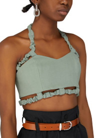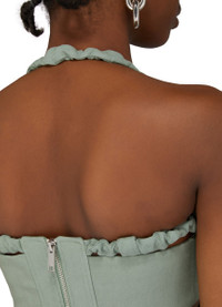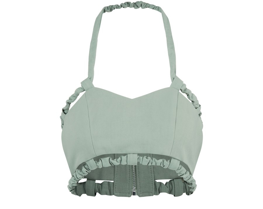 DESCRIPTION - Sleeveless top - Bare shoulder - Slim fitting - Neckline - Gather details DETAILS AND CARE MATERIAL: 100% organic cotton COLOR: green_bay COUNTRY OF MANUFACTURE: Portugal PRODUCT CODE: GAN92MYFGEE5621100 The model is 5ft 10in / 1.77m tall and wears a size DE 34.