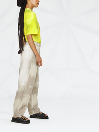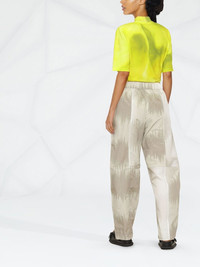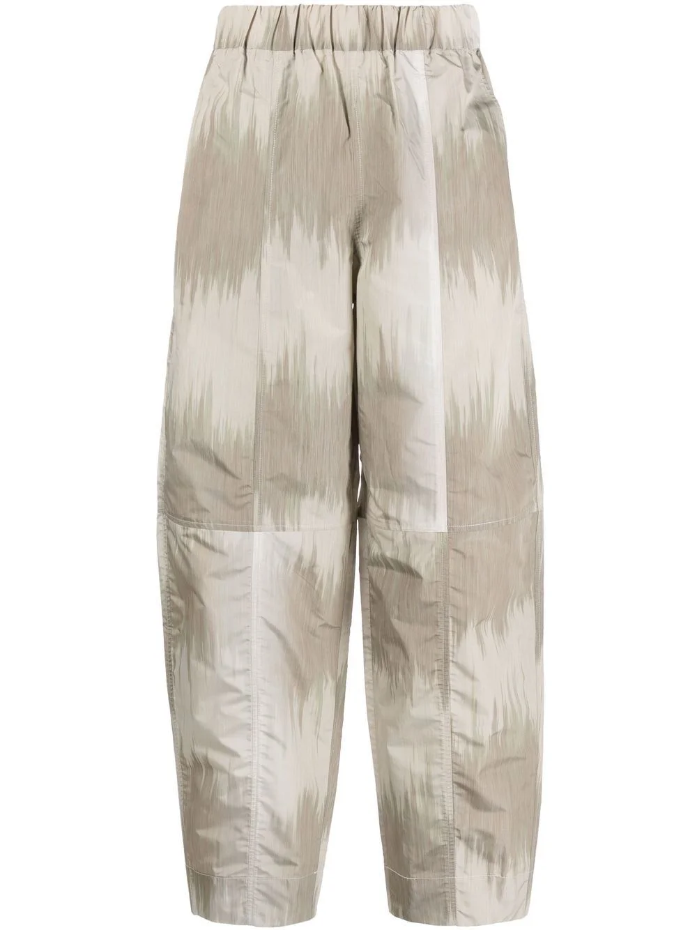 curved shell trousers These curved shell trousers from GANNI are defined by the agate rock-inspired print created using ikat tie-dye method. Made from a recycled polyester blend, the tapered pair present a practical design thanks to the 'crispy' tech fabric. Highlights - Grey - Recycled polyester blend - Tie-dye print - Tapered leg - Elasticated waistband - Two side slit pockets Imported Composition Recycled Polyester 60%, Polyester 40% SIZE & FIT Model measurements Height 5 ft 10 in(1.78 m) Bust/Chest 30.31 in(77 cm) Hips 36.61 in(93 cm) Waist 24.8 in(63 cm) FittingInformation This piece fits true to size. We recommend you get your regular size Designed to be fitted at the waist, loose over the leg Made with a mid-weight non-stretch fabric