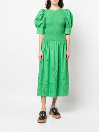 cut out-detail midi dress Highlights - Forest green - Organic cotton - Cut-out detailing - Round neck - Short puff sleeves - Mid-length Imported Composition Organic Cotton 100% Washing instructions Machine Wash