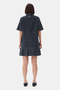 This Dark Blue Fluffy Denim Mini Dress features a collar and has a button closure. The dress has short sleeves and a pleated skirt. DETAILS - 100% organic cotton. Learn more about our materials - Collar - Short sleeves - Button closure - Pleated skirt Made in: Turkey Product ID: J1546 SIZE & FIT - Designed for a regular fit - Ariunzul is 5’9” and wears a size US 4