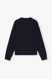 DARK BLUE GRAPHIC WOOL MIX BASEBALL SWEATER