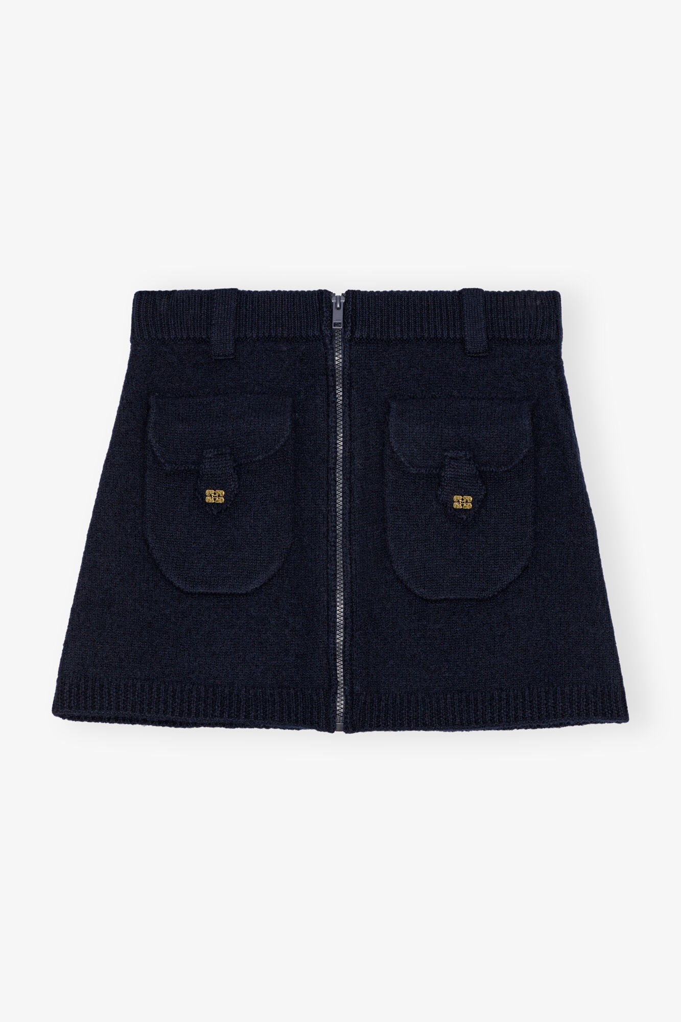 This Dark Blue Mini Skirt features a zip closure and front flap pockets. DETAILS - 100% wool. Learn more about our materials - Zip closure - Front flap pockets Made in: China Product ID: K2297 SIZE & FIT - Designed for a regular fit - Ariunzul is 5’9” and wears a size S