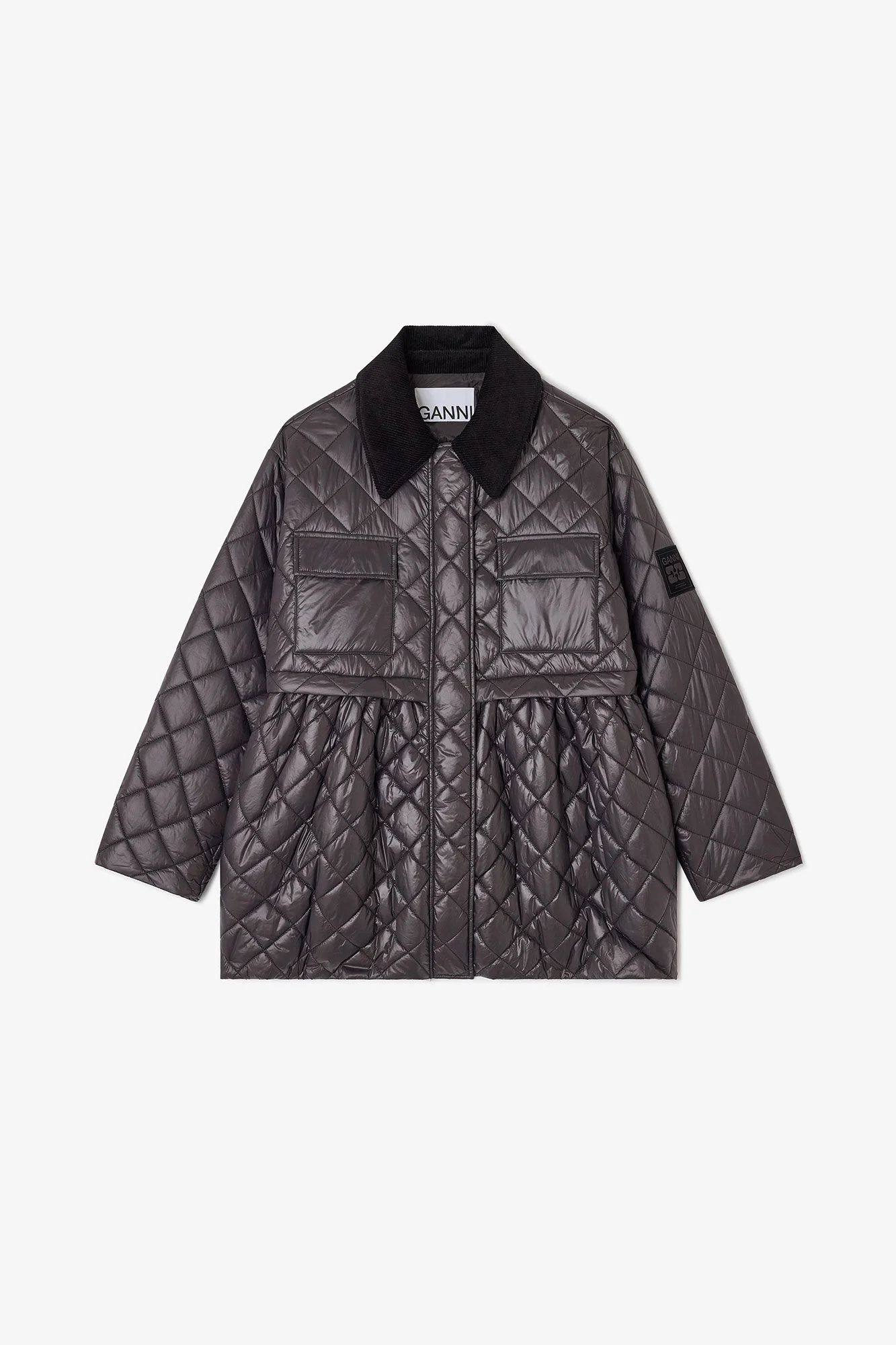 This jacket features a contrasting collar, zipper closure, 2 pockets and a GANNI logo. DETAILS - 100% recycled nylon. Learn more about our materials - Contrasting collar - Zipper closure - 2 pockets - Buttons - GANNI logo Made in: China Product ID: W0964 SIZE & FIT - Relaxed fit - Yaniris is 5’11” and wears a size S/M - For personalised guidance on sizing and fit, contact our Customer Service team - here - .