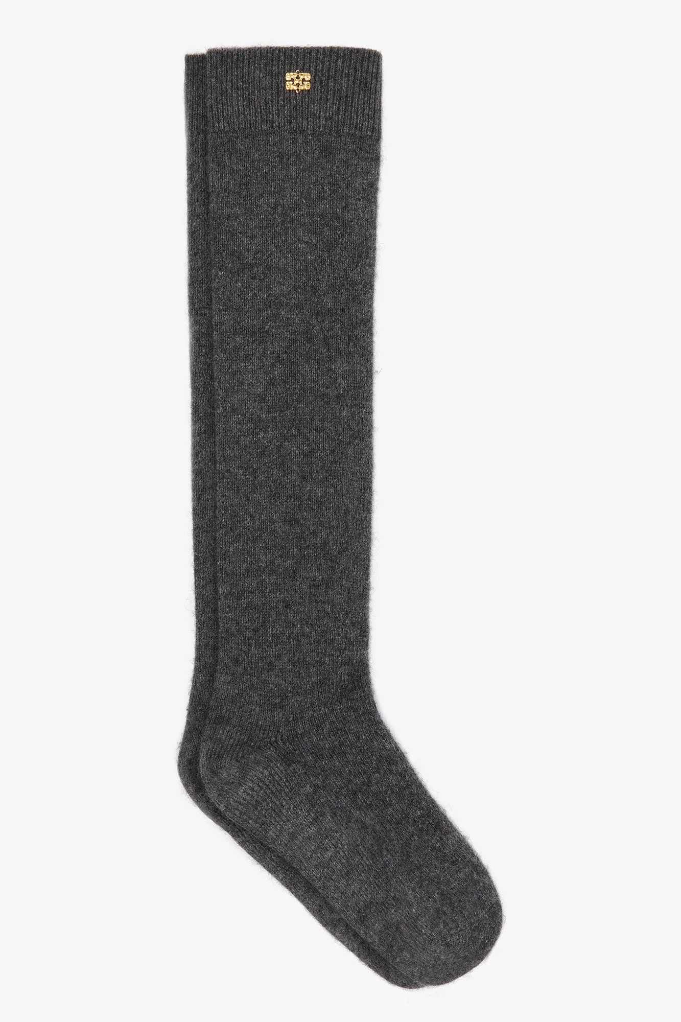 These socks features ribbed edges and a GANNI logo. DETAILS - 46% wool, 41% yak, 12% polyamide, 1% elastane. Learn more about our materials - Ribbed edges - GANNI logo Made in: China Product ID: A7214 SIZE & FIT - For personalised guidance on sizing and fit, contact our Customer Service team - here - .