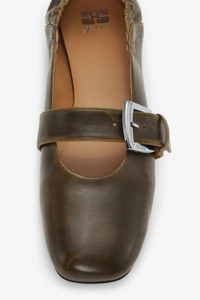 DARK-OLIVE BUCKLE STRAP BALLERINAS