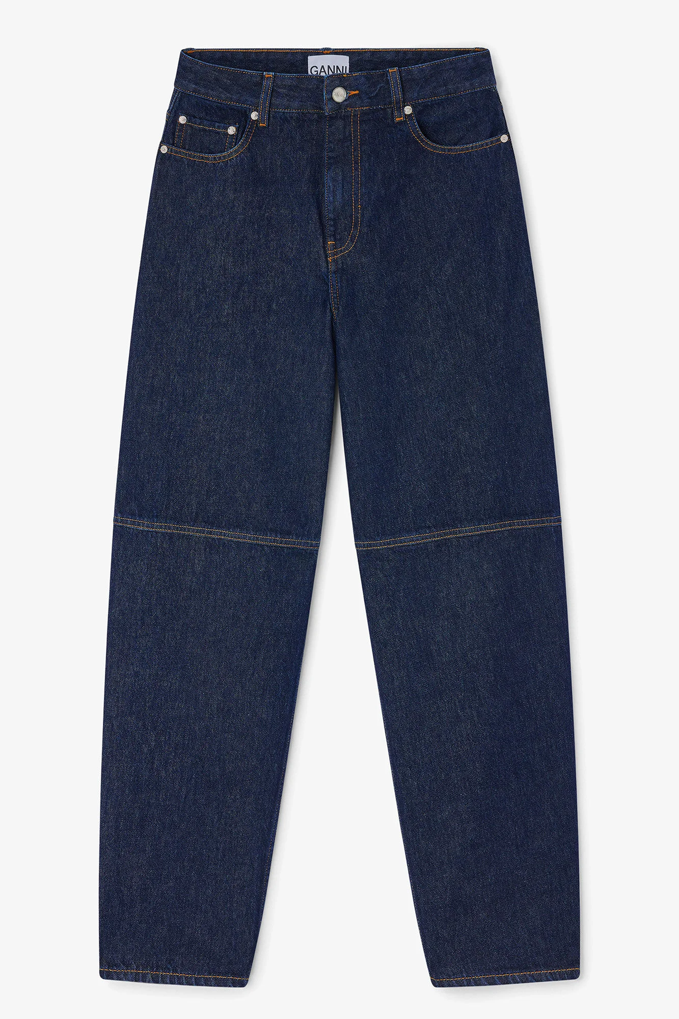 Mid-rise jeans with an ankle-length barrel leg, featuring a curved side seam. Style is fitted at waist and relaxed troughout the hips and thighs. Crafted from dark blue non stretch denim, giving the style a dark raw denim look. DETAILS - 100% Organic Cotton Learn more about our materials - Lining composition: 80% Polyester, 20% Cotton - Dark rinse wash - Length: Ankle - Waist: Mid - Closure: Zipper - Silhouette: Barrel - Fabric: Rigid Made in: Tunisia Product ID: A1100074 SIZE & FIT - Mid-rise with an ankle-length barrel leg - Fitted at the waist, relaxed through the hips and thighs. The curved side seam adds soft structure - Tia is 5’10” and wears a size 27W / 33L