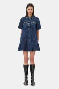 DENIM BLUE CRINKLED FUTURE MINI DRESS