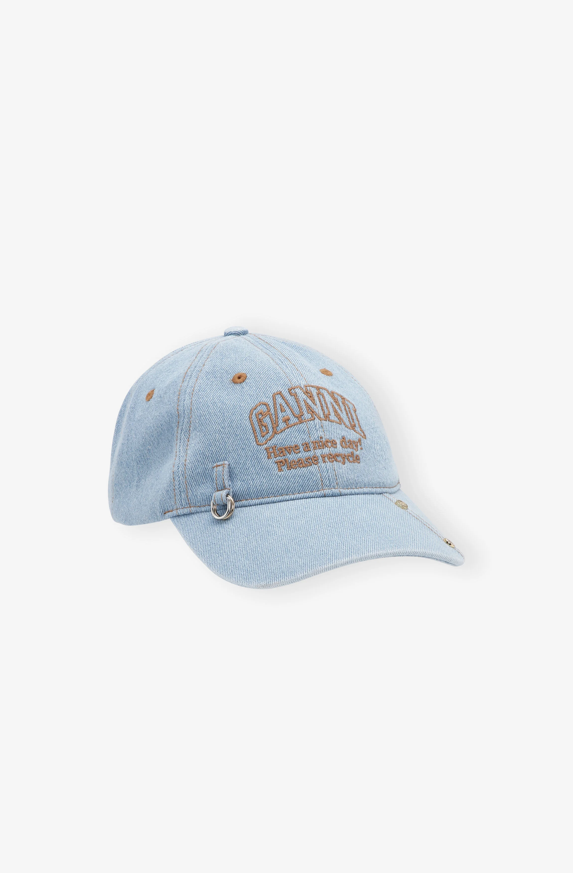 This Denim Cap features a silver-tone eyelet detail and a GANNI logo. DETAILS - 100% recycled cotton. Learn more about our materials - GANNI logo - Silver-tone eyelets Made in: China Product ID: A6563