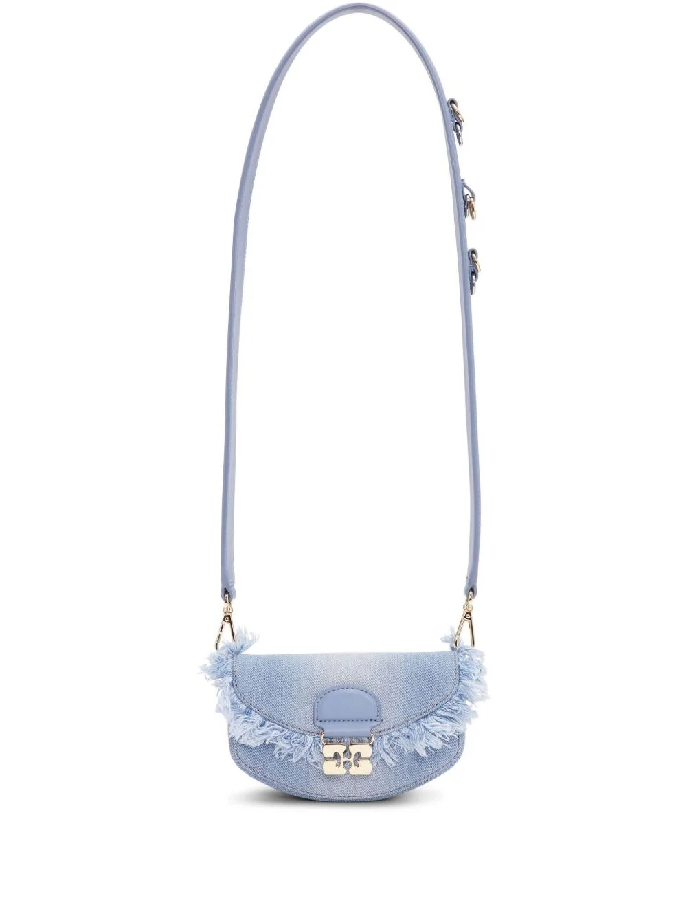 denim cross body bag Highlights - Light blue - Foldover top with magnetic fastening - Adjustable detachable shoulder strap - Logo plaque - Frayed brim Imported Composition Outer: Fabric 100%