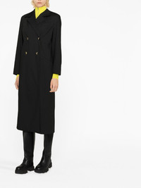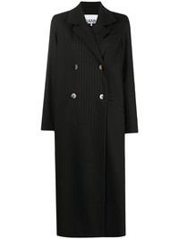 double-breasted striped coat Highlights - Black - Recycled polyamide blend - Double-breasted button fastening - Pinstripe pattern - Classic lapels - Two diagonal pockets to the sides - Long sleeves - Mid-length Imported Composition Outer: Recycled Polyester 61%, Viscose 33%, Elastane 6% Lining: Polyester 100% SIZE & FIT Model measurements Height 5 ft 10 in(1.79 m) Bust/Chest 31.49 in(80 cm) Hips 35.03 in(89 cm) Waist 23.62 in(60 cm) FittingInformation This piece fits true to size. We recommend you get your regular size Cut for a loose fit Made with a mid-weight stretch fabric Washing instructions Dry Clean Only