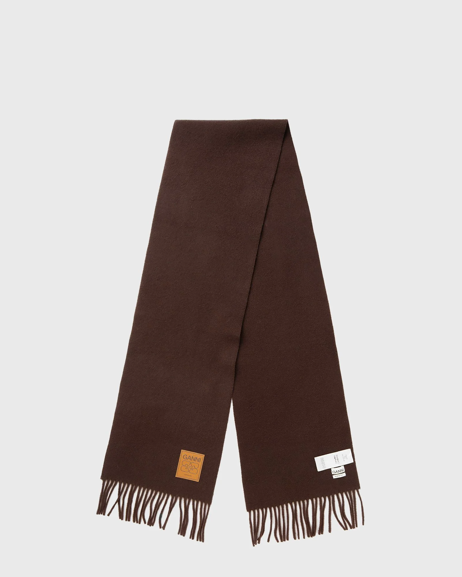 The wool knit scarf from Ganni adds style and cozy comfort to any winter look. Generously knitted from soft wool and featuring the discreet Ganni logo, it provides stylish protection on cold days. - Fringed edges - Logo patch Article number: B3020049-00B Gender: women Color: CHOCOLATE PLUM Material: 100% Wool