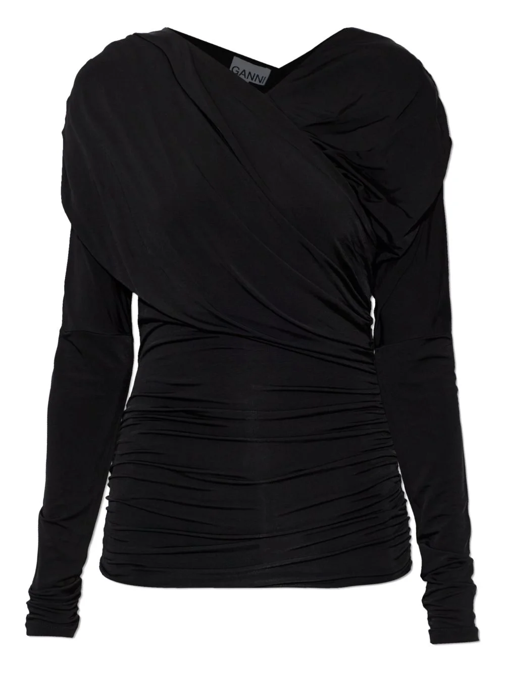 draped long-sleeve top Highlights - Black - Draped detailing - V-neck - Long sleeves - Ruched detail Imported Composition Viscose 95%, Elastane 5% Washing instructions Read Manufacturer Guidelines