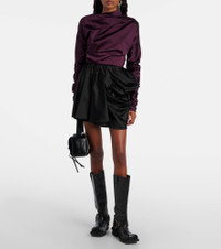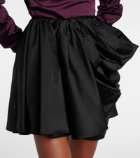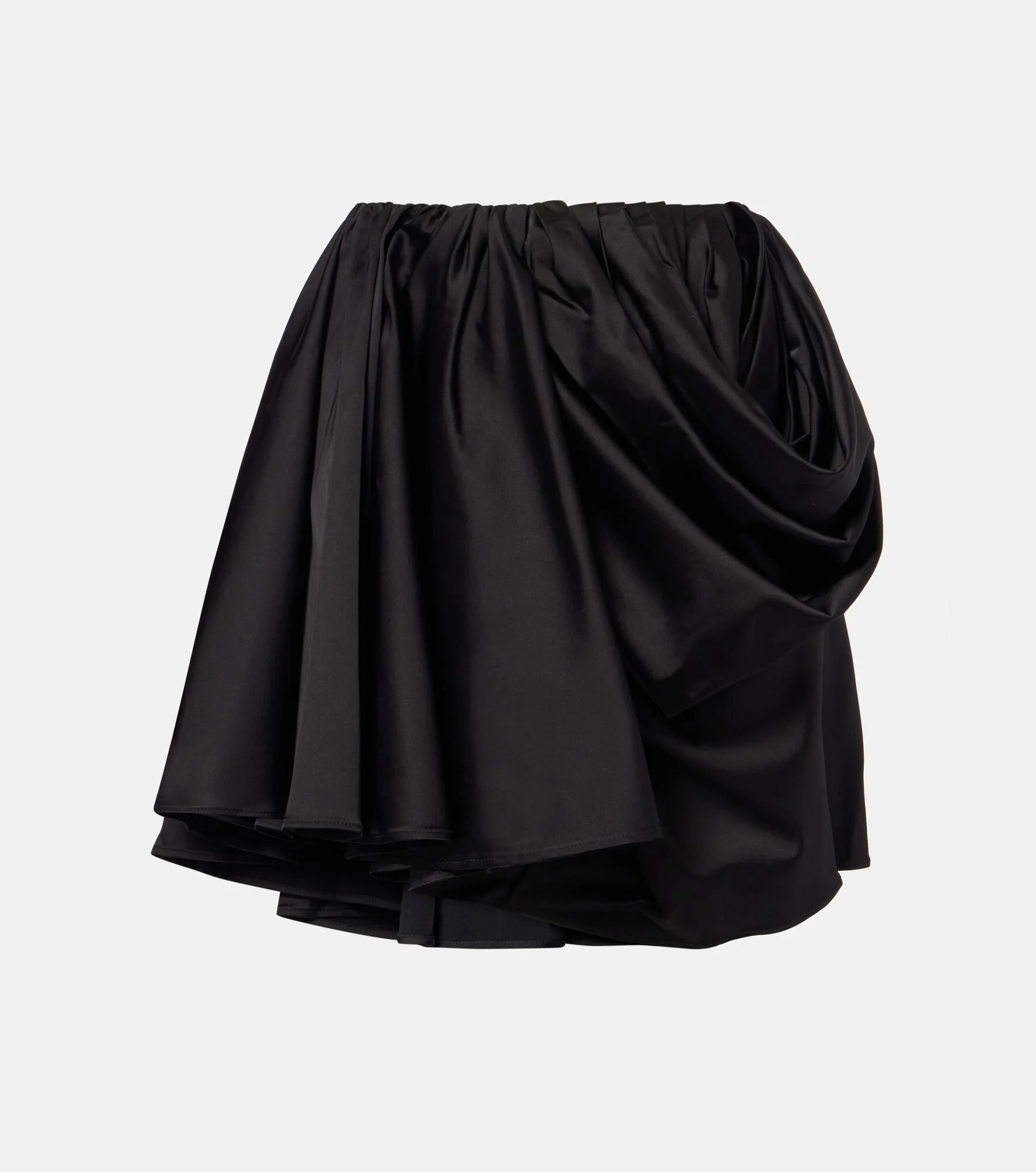 This Ganni miniskirt blends cool Scandinavian style with a modern edge. Draped detailing cascades along the side, while a concealed zip and hook fastening complete the design. Product Details - Material: 74% acetate, 23% nylon, 3% elastane - Care instructions: dry clean - Made in China - Designer color name: Black - Item color: black - Closure: concealed zipped side - Item number: P01090606 Size & Fit - True to size - Non-stretchy fabric - The model seen in the picture is 178cm-5'10" and wearing a size DE 34
