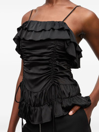 draped top Highlights - Black - Concealed rear zip fastening - Spaghetti straps - Ruffled trim - Square neck Imported Composition Fabric 100% Washing instructions Read Manufacturer Guidelines