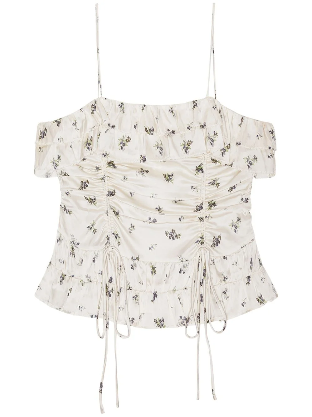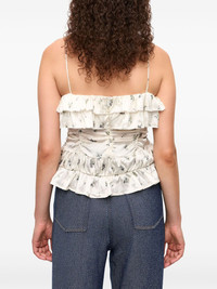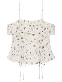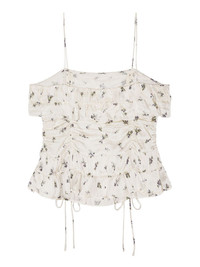 draped top Highlights - White - Concealed rear zip fastening - Spaghetti straps - All-over floral print - Ruffled trim Imported Composition Fabric 100%