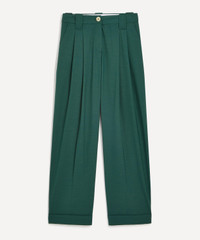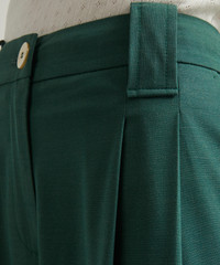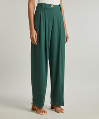 DETAILS Trekking Green trousers Relaxed fit Loose leg Double front pleats Zip and button closure Belt loops Side pockets Decorative pockets at the back SIZE & FIT Model is 175cm/5'9"; Chest: 82cm; Waist: 59.5cm; Hip: 86cm and wears a size 8 COMPOSITION & CARE 48% LENZING™ECOVERO™ Viscose; 47% Polyester; 5% Elastane Wash inside out