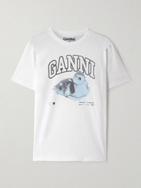 GANNI's T-shirt is printed with a blue duckling and the label's 'have a nice day!' motto. It's cut for a relaxed fit from soft cotton-jersey. Size & Fit - Fits true to size, take your normal size - Cut for a relaxed fit - Mid-weight, slightly stretchy fabric - Model is 180cm/ 5'11" and is wearing a size Small Model measurements: - Bust: 86cm/ 34" - Waist: 65cm/ 25.5" - Hip: 90cm/ 35.5" Details & Care - White, light-blue and dark-gray cotton-jersey - Slips on - 100% cotton - Machine wash