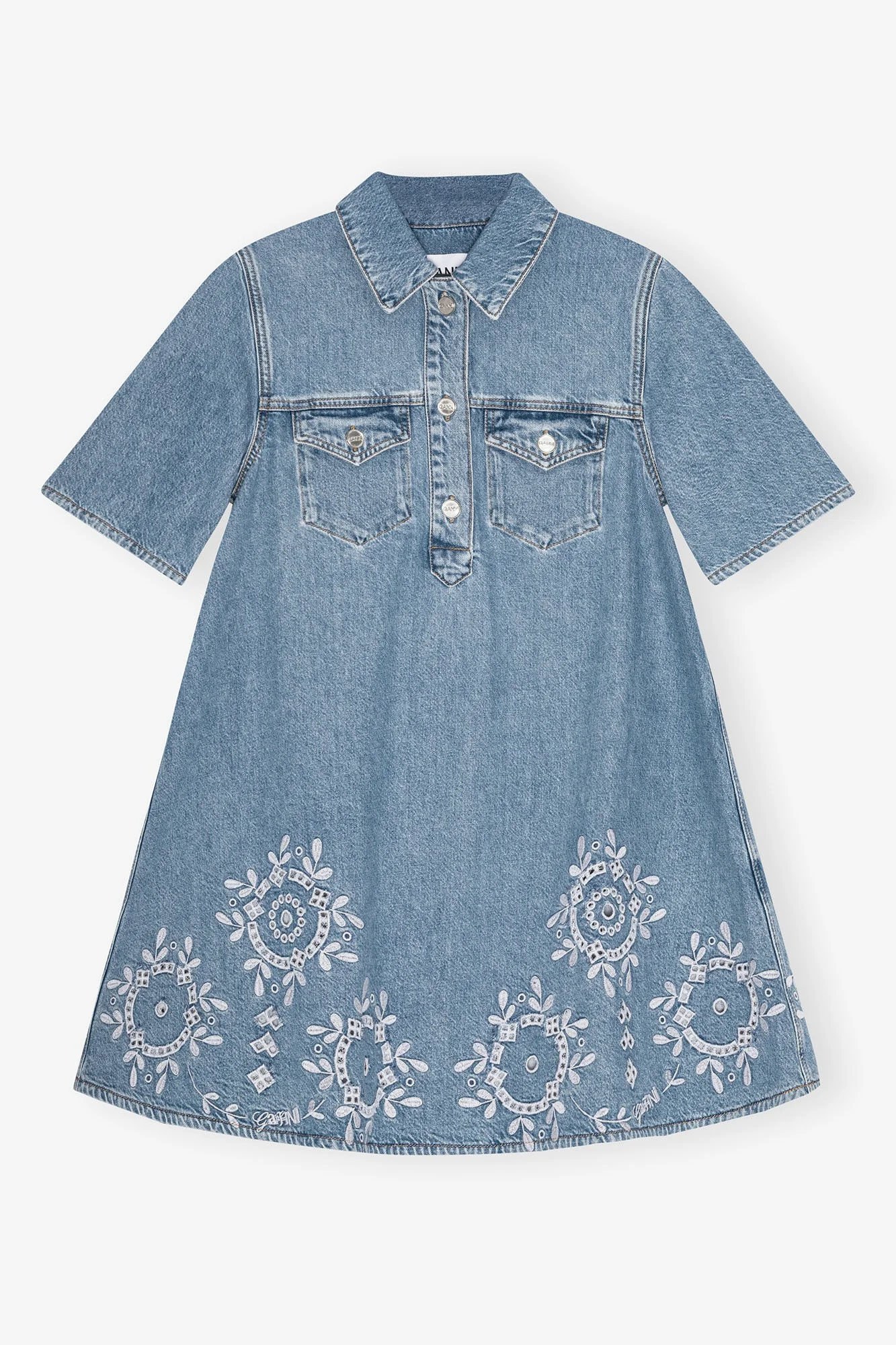 This dress features a collar, button closure, elbow-length sleeves, front pockets and broderie anglaise detailing . DETAILS - 100% organic cotton. Learn more about our materials - Classic collar - Button closure - Short sleeves - Front chest pockets Made in: Tunisia Product ID: J1694 SIZE & FIT - Regular fit - Xia is 5’9” and wears a size US 4
