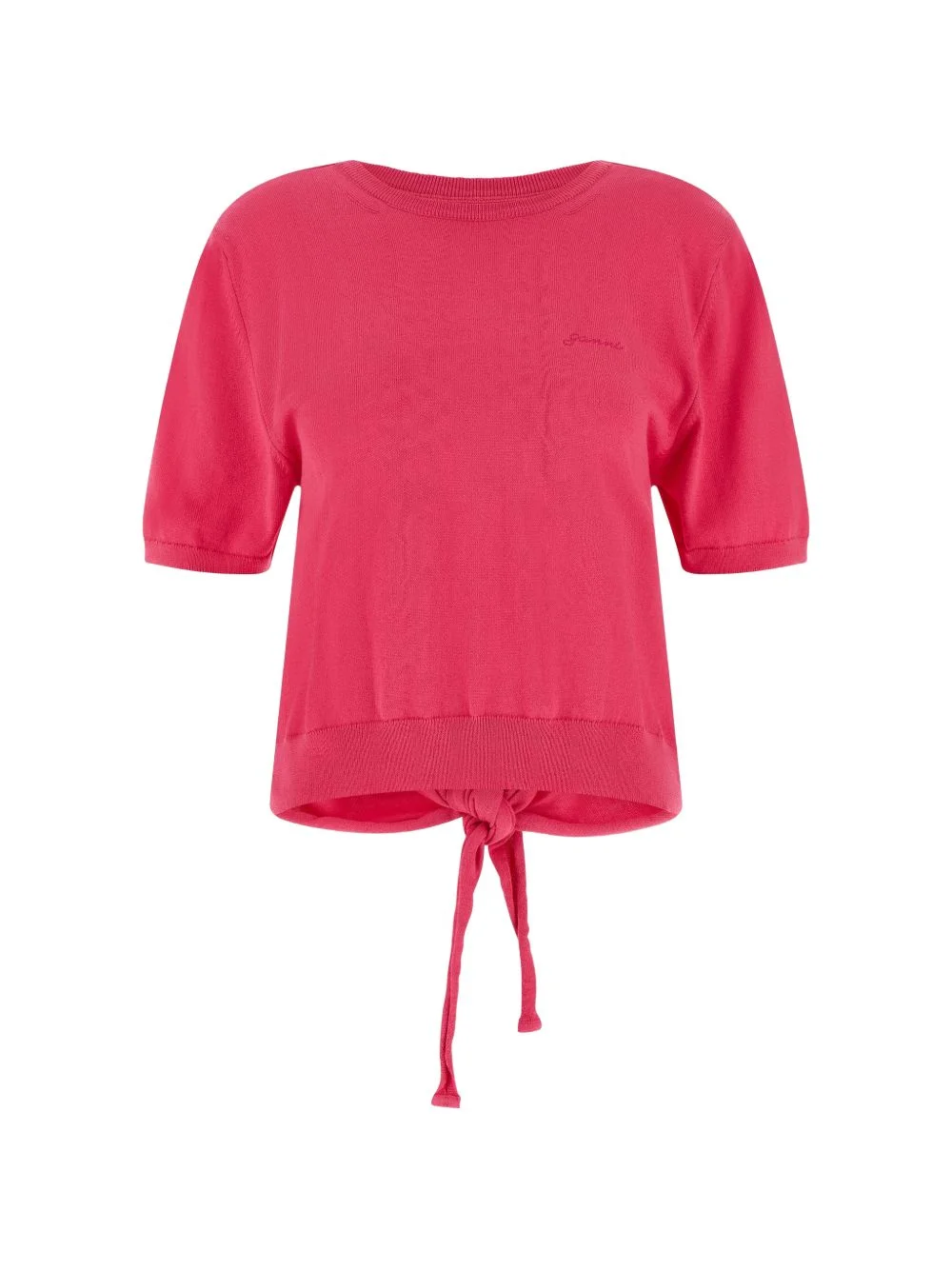 embroidered-logo back-ribbon T-shirt Highlights - Fuchsia pink - Cotton - Round neck - Embroidered logo - Open back - Ribbon detail Imported Composition Organic Cotton 100% Washing instructions Read Manufacturer Guidelines