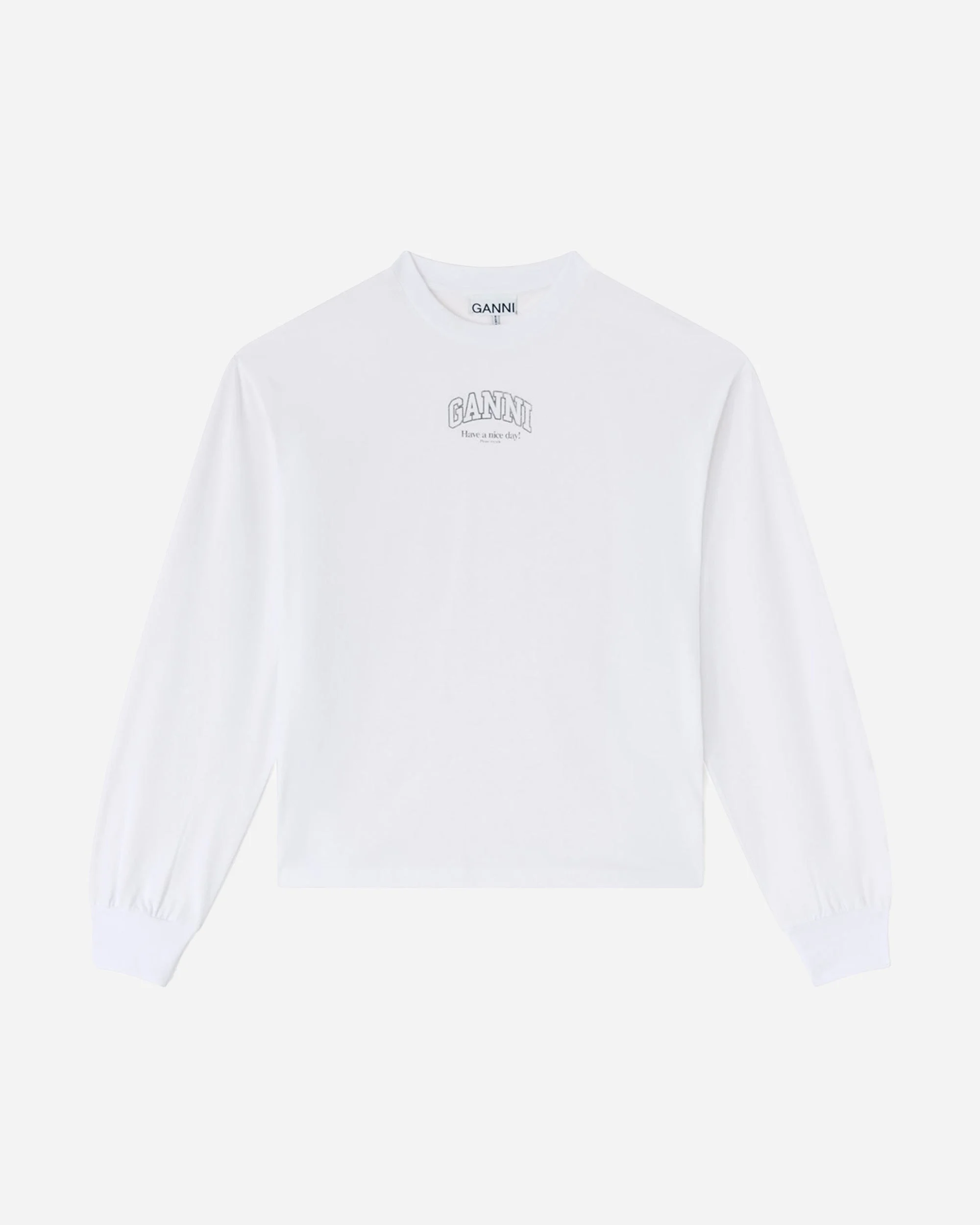 The Essential Basic cotton long sleeve from GANNI brings a fresh, minimal touch to your everyday rotation. Crafted from soft cotton, it offers breathable comfort ideal for layering or wearing solo. With its timeless white base color, this piece transitions seamlessly from casual street looks to understated sneaker pairings. The long sleeves and tailored fit make it a versatile staple for those invested in both clothing and sneaker culture. As part of the GANNI family, it reflects an effortless approach to style while providing a clean backdrop to showcase your favorite footwear. Discover how this essential from NAKED Copenhagen fits into your day-to-day, whether you’re at the spot or on the move. Sizing: WOMENS Article Number: A1050068-151 Product color: Bright White Delivery & Returns: Shipping to the U.S.: Import duties and taxes not included. These are paid by the customer upon delivery.