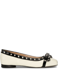 eyelet-embellishment bow-detail ballet flats Highlights - White - Slip-on style - Branded leather insole - Rubber sole - Round toe Imported Composition Lining: Calf Leather 100% Sole: Calf Leather 100%, Rubber 100% Outer: Calf Leather 100%