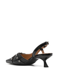 55mm buckle-detail glossy pumps Highlights - Black - Faux leather - Glossy finish - Pointed toe - Decorative buckle detail - Strap detailing - Buckle-fastening slingback strap - Branded leather insole - Low sculpted heel - Rubber sole Imported Composition Other fibres 100% SIZE & FIT Measurement HEEL 2.16 in(5.5 cm)