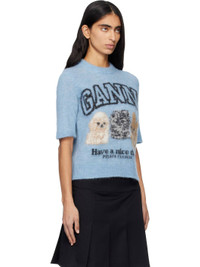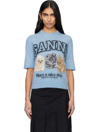 Brushed alpaca- and wool-blend T-shirt. · Rib-knit crewneck, hem, and cuffs · Jacquard logo graphic and text at front Supplier color: Soft chambray 50% alpaca, 28% polyamide, 22% wool. Made in Romania 252144F110019