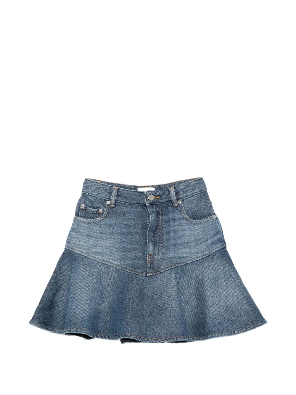 flared denim mini skirt Highlights - Blue - Five pockets - Belt loops - Cotton Imported Composition Outer: Organic Cotton 100% Lining: Polyester 80%, Cotton 20% Washing instructions Machine Wash