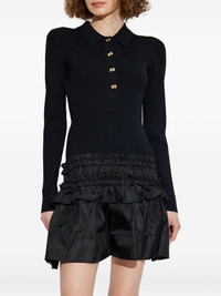ribbed ruffled-skirt mini dress Highlights - Black - Shirt collar - Long sleeves - Ruffled skirt Imported Composition Viscose 100% Washing instructions Read Manufacturer Guidelines