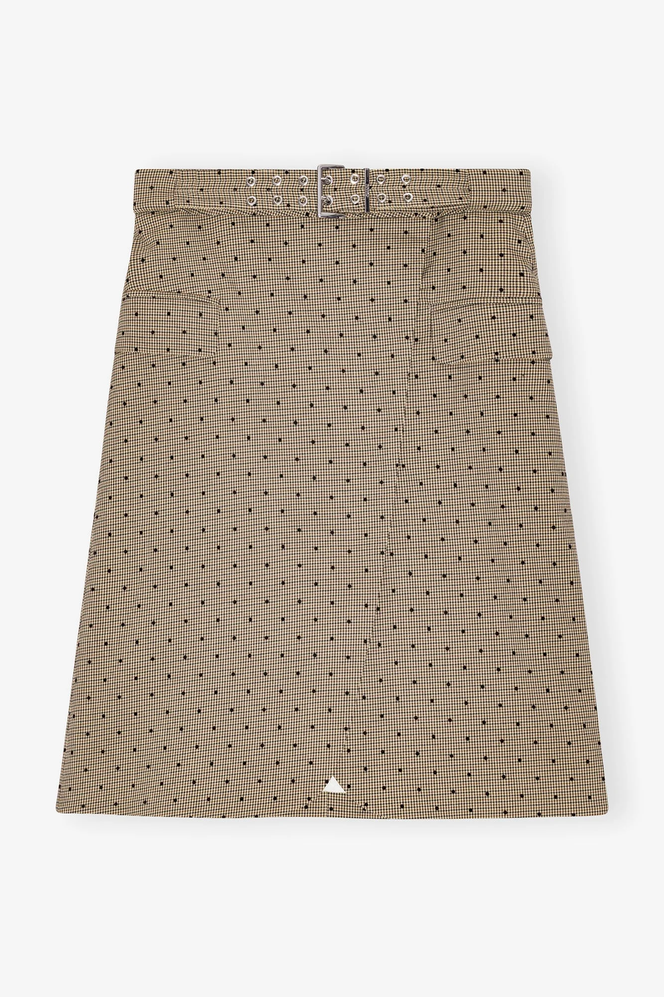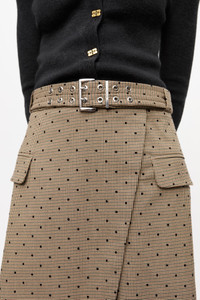 Crafted from a LENZING™ ECOVERO™ Viscose blend, this Flock Check Suiting Skirt is effortlessly refined yet versatile—a feminine take on classic tailoring. Designed in a casual-chic wrap silhouette, it features a check pattern with delicate flocked dots, decorative pockets, and a double-eyelet belt detail. DETAILS - 64% recycled polyester, 34% LENZING™ ECOVERO™ viscose, 2% elastane. Learn more about our materials - Lining composition: 100% viscose - Decorative pockets - Matching belt Made in: Turkey Product ID: W0297 SIZE & FIT - Elvina is 5’11” and wears a size US 4