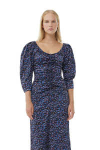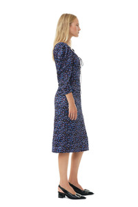 FLORAL CRINKLED SATIN U-NECK MIDI DRESS