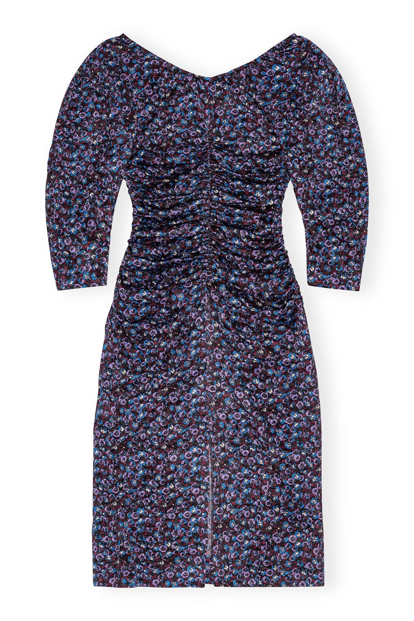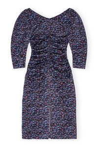 This Floral Crinkled Satin U-neck Midi Dress is designed for a slim fit and features a U-neckline with a tie band, curved elbow-length sleeves, zip closure, ruching at the front, back and sides, a high slit at the back and a floral print. DETAILS - 95% recycled polyester, 5% elastane - U-neckline with a tie band - Curved elbow-length sleeves - Zip closure - Ruching at the front, back and sides - High slit at the back - Floral print Made in: China Product ID: F8888 SIZE & FIT - Designed for a slim fit throughout, skimming the body without clinging - Fits true to size, take your normal size - Lightweight, soft and crinkled fabric - Daria is 5’9” and wears a size US 4