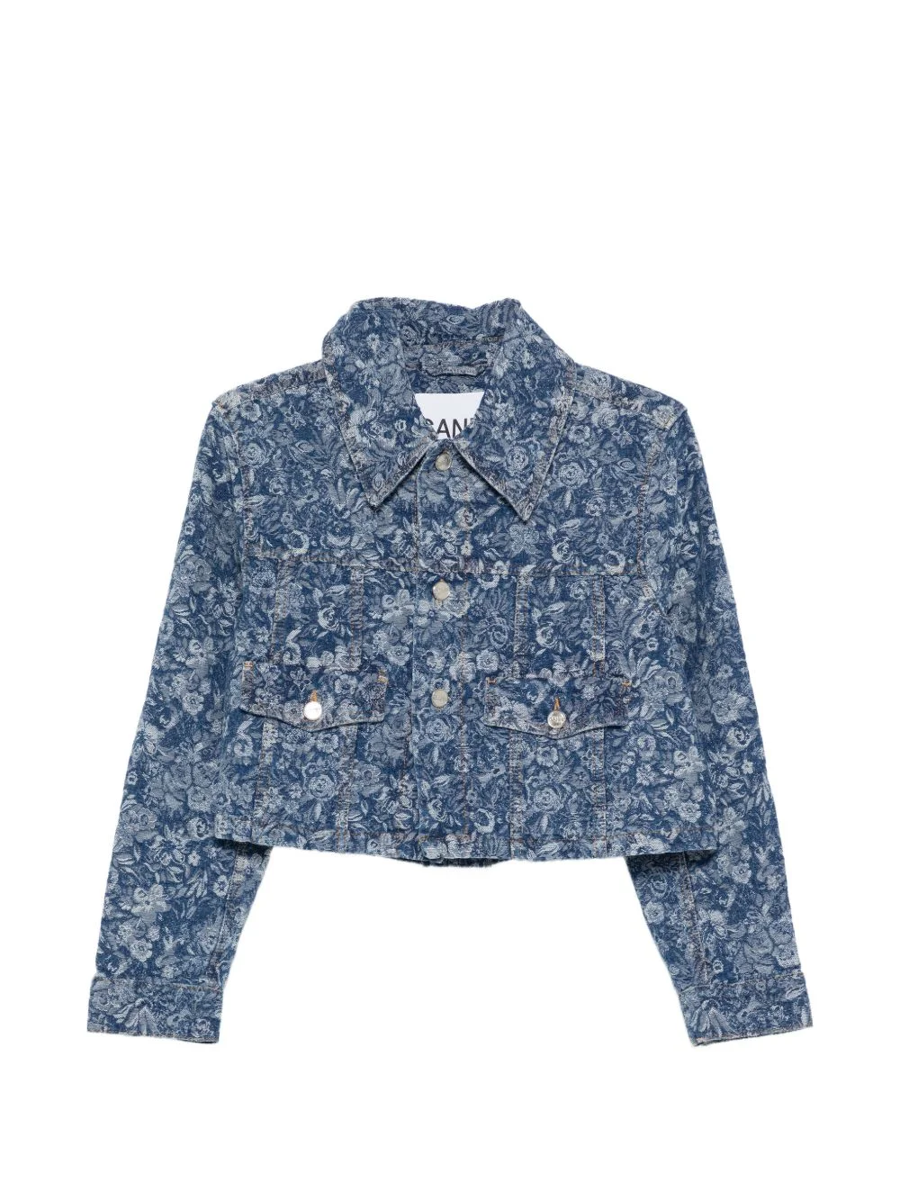 floral cropped jacket Highlights - Blue - Floral print - Front button fastening - Point collar - Chest pockets - Long sleeves Imported Composition Outer: Organic Cotton 100% Lining: Recycled Polyester 65%, Cotton 35% Washing instructions Machine Wash