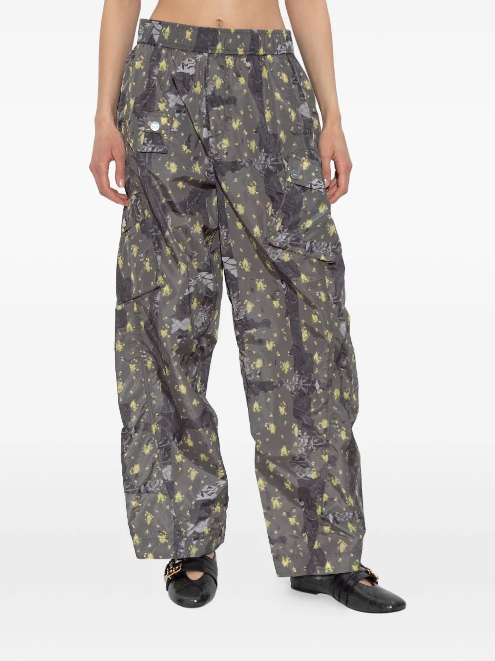 floral-print cargo trousers Highlights - Grey - All-over floral print - Side cargo pockets - Elasticated waistband Imported Composition Outer: Recycled Polyamide 100% Washing instructions Read Manufacturer Guidelines