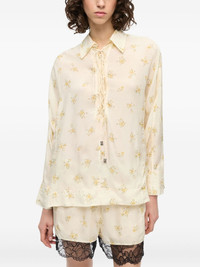 floral-print blouse Highlights - Light beige - Front tie fastening - Buttoned cuffs - Long sleeves - Curved hem Imported Composition Viscose 100% Washing instructions Machine Wash