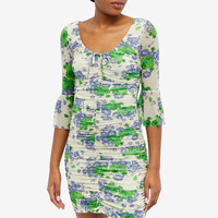 Florals, flares and ruching - a GANNI creation if we ever saw one. This mini dress by the Scandi label features a fun floral print, with flared mesh sleeves and ruched details at the front and sides for a form-fitting silhouette. It’s also crafted from recycled materials - a win for the climate conscious GANNI Girls out there. - 91% Recycled Nylon, 9% Spandex - U-Neck - Zip Closure - Flared Sleeves
