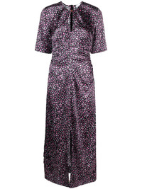 floral-print silk dress GANNI's effortless design style is exhibited in this dress for AW23. Decorated in an all-over floral print, this design is made from organic silk with a bit of stretch for comfort. Highlights - Black/multicolour - Stretch-silk - Gathered detailing - All-over floral print - Keyhole neck - Short sleeves Made in Italy Composition Organic Silk 92%, Elastane 8% SIZE & FIT Model measurements Height 5 ft 10 in(1.77 m) Bust/Chest 32.67 in(83 cm) Hips 35.43 in(90 cm) Waist 23.62 in(60 cm) FittingInformation Designed for a slim fit that sits just away from the body offering a close yet comfortable fit Made from a lightweight stretch fabric, this piece offers elasticity and flexibility when worn This piece fits true to size – take your usual size